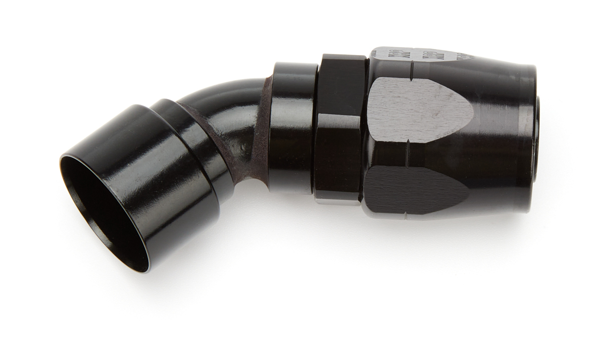 Product Description Fitting - Hose End - 45 Degree - 12 AN Female Swivel to 12 AN Hose Quick Disconnect - Aluminum - Black Anodized - Each