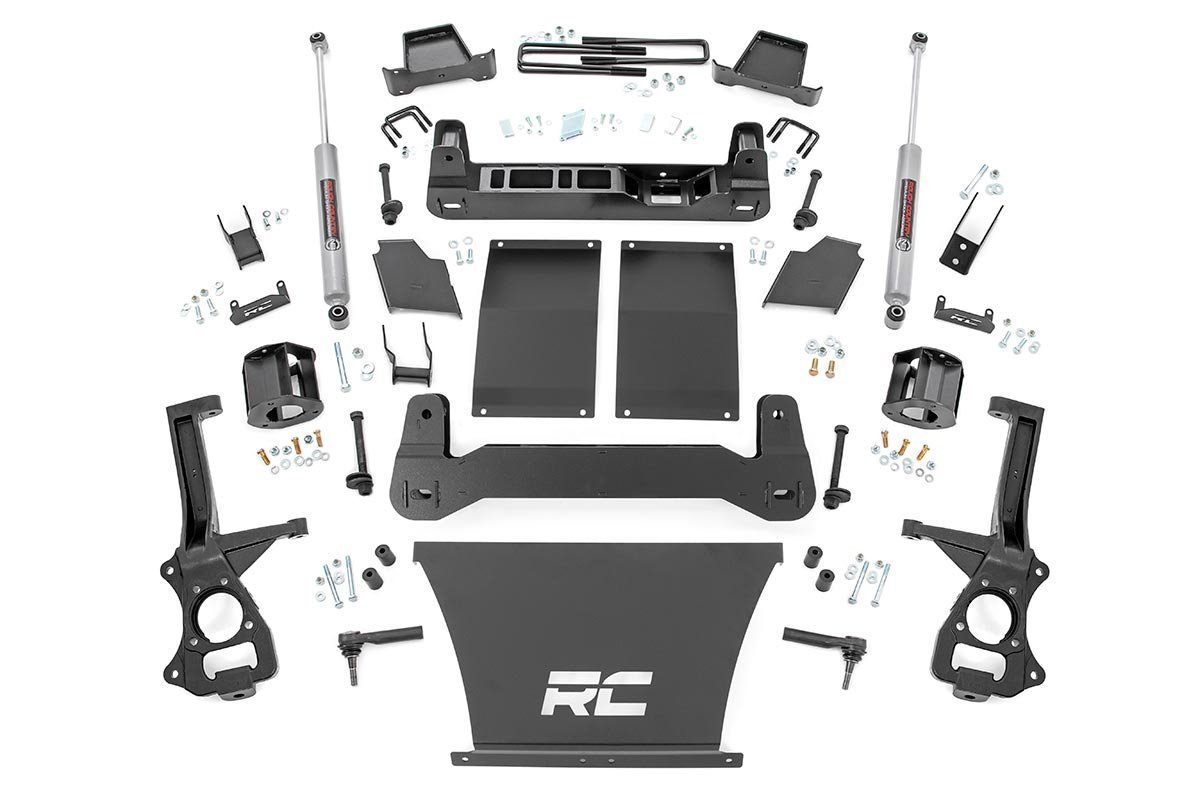 Product Description Suspension Lift Kit - 6 in Lift - Brackets / Bushings / Crossmembers / Differential Skid Plate / Hardware / Knuckles / Shocks / Spacers - GM Fullsize Truck 2019-21 - Kit