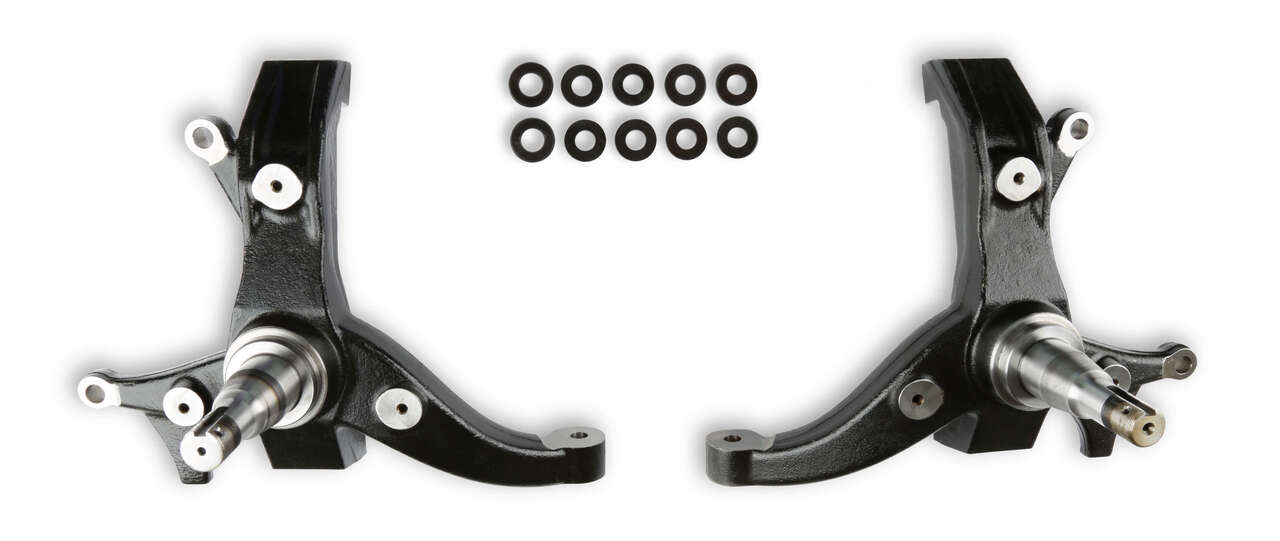 Product Description Spindle - Lowered 1 in Pin Height - 1 in Extended Knuckle Height - Steel - Black Paint - GM F-Body 1970-81 - Pair