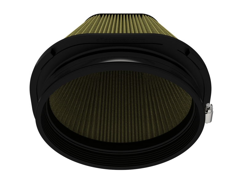 This filter features seven layers of composite media for maximum protection. The patented combination of oiled cotton gauze with synthetic material allows this media to thrive in the dustiest and dirtiest environments imaginable. Pro-GUARD 7 filters are easily recharged with aFe's POWER CLEANER and gold air filter oil. aFe POWER performance air filters use a rounded, evenly spaced pleat design which allows for more usable filter surface area, providing increased flow and greater dust holding capacity. Its surrounded by expanded metal that provides additional protection, preventing filter collapse and direct impact. This aFe POWER performance air filter is constructed with a polyurethane base and top. Unlike other materials that degrade after repeated heat cycles in an engine bay, polyurethane maintains its original molded shape. Utilizing the filter's retention groove, the filter locks into select Magnum FORCE Series housings with zero hardware. This simple design allows for easy filter maintenance and replacement.
