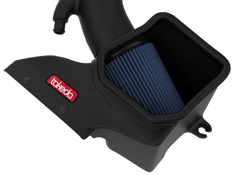 This 360-degree radial flow air filter features a 4" flange and our pre-oiled Pro 5R media with five layers of progressively finer cotton gauze media for maximum performance. It provides your engine with the largest amount of high-flowing air and delivers the highest power gains in most cases. This media is perfect for street and/or track use. Its inverted top makes for more filter surface area, resulting in longer service intervals.This system features a high quality, computer-designed, dyno-tuned intake tube to achieve maximum power gains while maintaining a perfect fit. Its XLPE material is heat soak resistant and extremely durable. It features a Takeda design inspired by import vehicles. The included performance air filter is surrounded by an open-element XLPE (cross-linked polyethylene) polymer housing that minimizes warm engine air for maximum performance. Its open design allows for easy viewing of the air filter and delivers an aggressive Air Intake sound. It features an incorporated scoop to capture air from the front of the vehicle. Stainless-steel clamps and reinforced silicone couplings are included for strength and durability. Momentum intakes are designed with fewer parts for a fast and easy installation. Included billet aluminum fittings allows stock connections to transfer over seamlessly. To maximize the amount of air going to the this Air Intake System, Takeda Turbo Inlet 59-20002 is available. This Turbo Inlet will remove the air flow restriction of the factory turbo inlet, providing a smooth transition for the air from the Takeda Air Intake tube to the turbo.