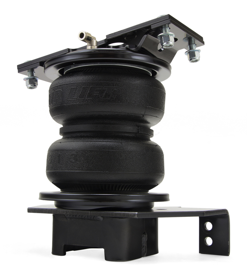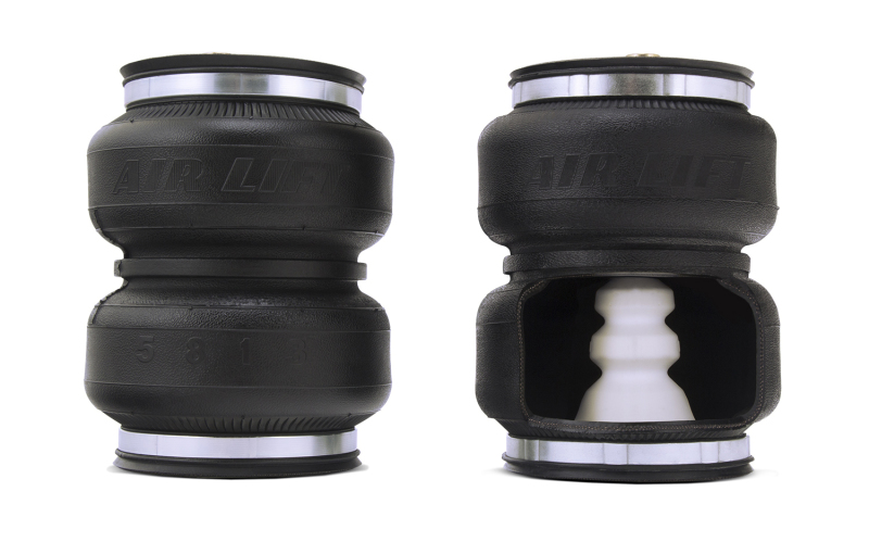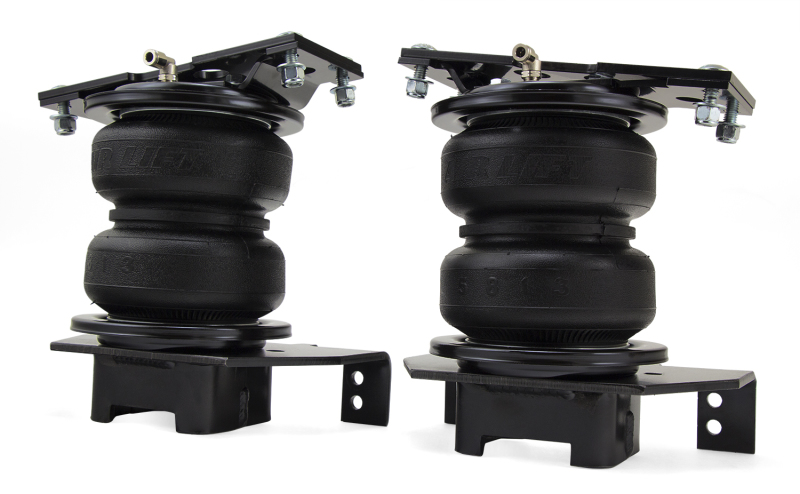 LoadLifter 5000 ULTIMATE adjustable air spring kits feature all of the benefits of our heaviest rated air spring with the addition of an internal jounce bumper inside the spring for the ultimate in ride comfort. An Air Lift exclusive product! Fits vehicles with in-bed hitches. Tow and haul the heaviest loads with safety and comfort with LoadLifter 5000 ULTIMATE. Works with vehicle's leaf springs to provide up to 5,000 lbs. of rear load leveling capacity and keeps the vehicle riding stable, level and comfortable whether loaded or unloaded. Fully adjustable from 5 to 100 PSI. The closed-cell urethane foam jounce bumper inside the ULTIMATE air springs provide a cushion of air that absorbs shock, eliminates harsh jarring on rough roads and protects vehicles carrying heavy loads. Never bottom out again with the ULTIMATE! LoadLifter 5000 ULTIMATE air springs are maintenance free! Safely run with zero air pressure because of the internal jounce bumper. Replaces factory jounce bumper that is sometimes removed when adding air springs. Requires no drilling into frame! Includes industry-exclusive 60 Day No Questions Money Back Guarantee! Includes the most comprehensive Lifetime Warranty in the industry---covers all kit contents including brackets, fittings and air line. Air springs are built like a tire and are reinforced by durable, 2-ply fabric for maximum strength. Exclusive upper and lower roll plates included. Protect the springs from sharp edges, such as brackets or the frame. The kit includes 2 air springs, brackets, air lines, Schrader valve and all of the hardware needed for installation. Includes fully illustrated instruction manual. Add an Air Lift on-board air compressor system to inflate and deflate air springs with the touch of a button from inside or outside of the vehicle.