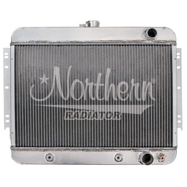 Product Description Radiator - Muscle Car - 23.375 in W x 15.25 in H x 2.25 in D - Passenger Side Inlet - Passenger Side Outlet - Aluminum - Natural - GM A-Body 1965-67 - Each