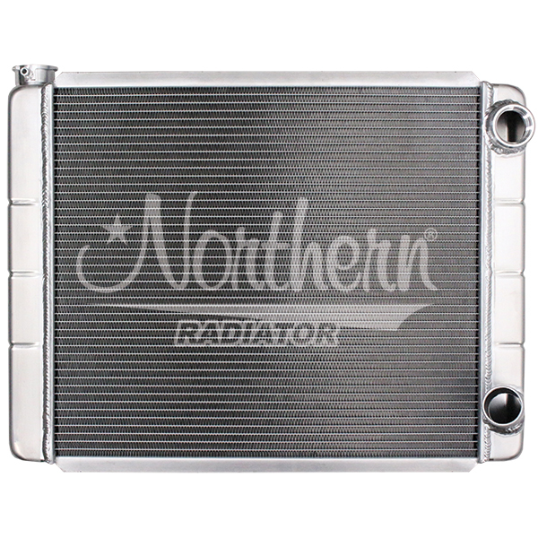 Product Description Radiator - Race Pro - 25.375 in W x 19.625 in H x 3.125 in D - Passenger Side Inlet - Passenger Side Outlet - Aluminum - Natural - GM - Each