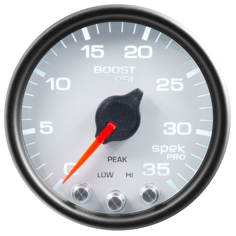 Autometer Spek-Pro Gauge Boost 2 1/16in 35psi Stepper Motor W/Peak & Warn White/Black - P30312