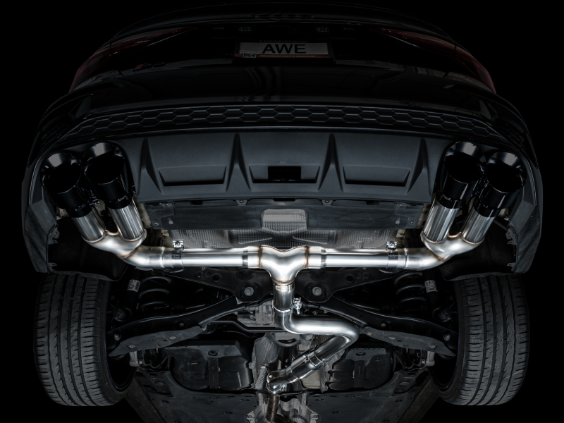 The Track Edition features a 3” inlet complete with an adapter to accommodate the factory downpipe perfectly while leaving an open 3” connection. Featuring minimal filter with one bullet resonator in the center, the Track Edition provides a full-bodied soundtrack at all times.. This configuration provides the best ratio of interior refinement and exterior rumble on the market. No valves needed. Switch driving modes and the exhaust will render the same result as a vavled exhaust. It's the do-it-all exhaust for every day drivers. Comes complete with quad 4.5" slash-cut, double-walled tips in diamond black. The AWE Track Edition for the 8Y S3 is made in the USA and backed by AWE’s Fitment Guarantee, 50 state emissions compliance, No Check Engine Light Guarantee, and the AWE Lifetime Warranty.
