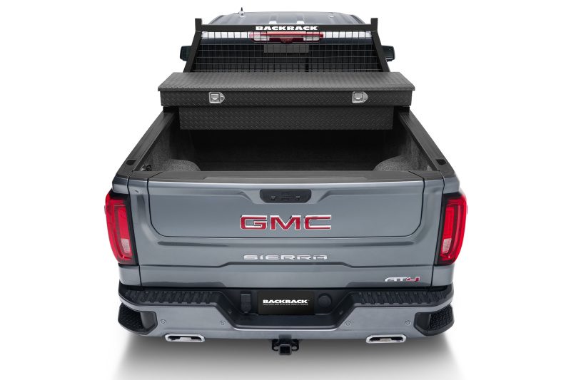 Has welded wire mesh to provide full window protection. Has wider carrying capacity above cab. Each intersection of wire is welded to avoid rattling and provide strength. Less flexibility to mount accessory light brackets than the BACKRACK(TM). Is more expensive than the BACKRACK(TM). Sits higher above the cab than the BACKRACK(TM).