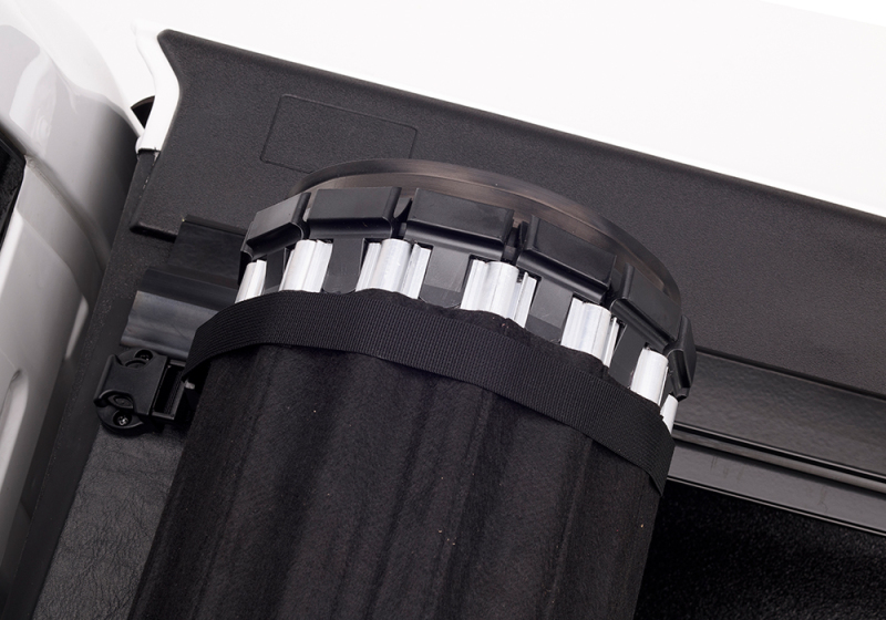 The Revolver X2 hard rolling truck bed cover features exclusive automatic rotational locking rails that secure the cover the entire length of the bed on each side. This hard aluminum roll-up cover easily rolls up with one-handed operation and allows use of every inch of the truck bed without blocking your rear window. This cover does it all with unrivaled strength, security and style.
