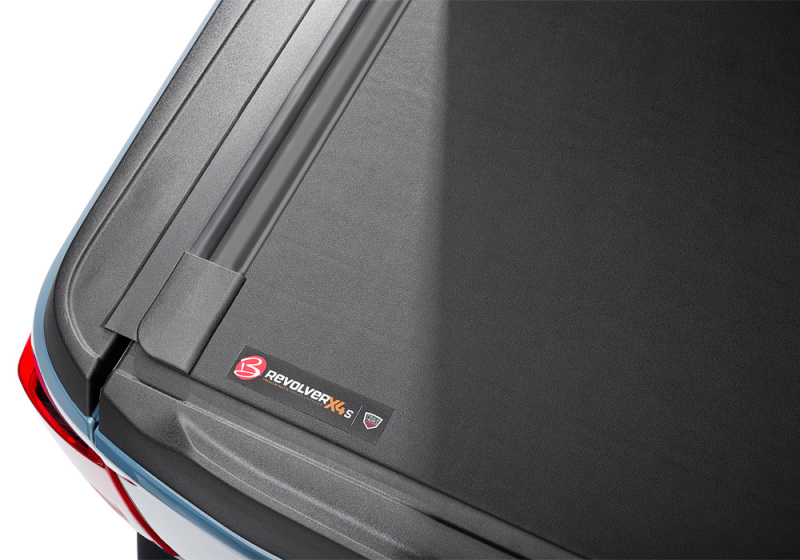 The new BAK Revolver X4s is the third generation of America's #1 selling premium hard rolling cover, now with exciting new features. The Revolver X4s is a bed cover engineered for real-world durability. With NEW matte black heavy-duty aluminum slats wrapped in industrial-grade vinyl and a matte black finish, top-to-bottom, the X4s delivers a modern, stylish appearance. With the cover closed, the patented rotational locking system secures the X4s for the entire length of the bed, on both sides, providing unrivaled strength and security. When open, the X4s cover rolls forward smoothly, storing securely with a durable strap and buckle system. This design gives you full access to your truck bed and does not interfere with your rear view mirror sightlines or block the third brake light. With revised premium black aluminum slats, newly designed side seals, and finished rear corner caps, the Revolver X4s bed cover achieves a new level of refinement for your truck. Best of all, it's backed by an impressive 5-year warranty. Expect More.