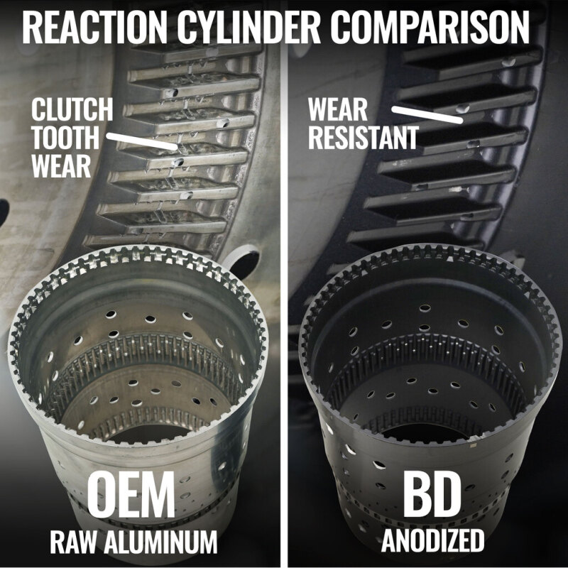 Engineered for enhanced reliability and extended service life, the BD 10R80 RoadMaster Transmission is the ideal upgrade for stock or mildly modified trucks. It addresses common 10R80 weaknesses with durable solutions -- most notably, the notorious CDF Drum leak is fixed by introducing a retaining feature to support the internal bushing from shifting and blocking fluid pathways. For sharp shifts and lasting performance, each transmission features an anodized reaction shell to eliminate embedded clutch tooth wear issues and a new OEM valve body -- modified to improve solenoid retention and increase line pressure by 30%, delivering noticeably higher clutch holding power.
