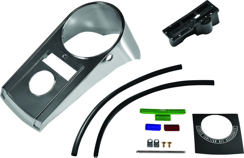 Chrome-plated replica of die-cast dash cover. Complete with lenses, lens retainer, hardware and mounting gaskets.