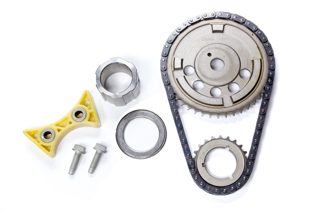 Product Description Timing Chain Set - Race Billet True Roller - Single Roller - 9 Keyway Adjustable - Thrust Bearing - Steel - LS2 / LS3 - GM LS-Series - Kit