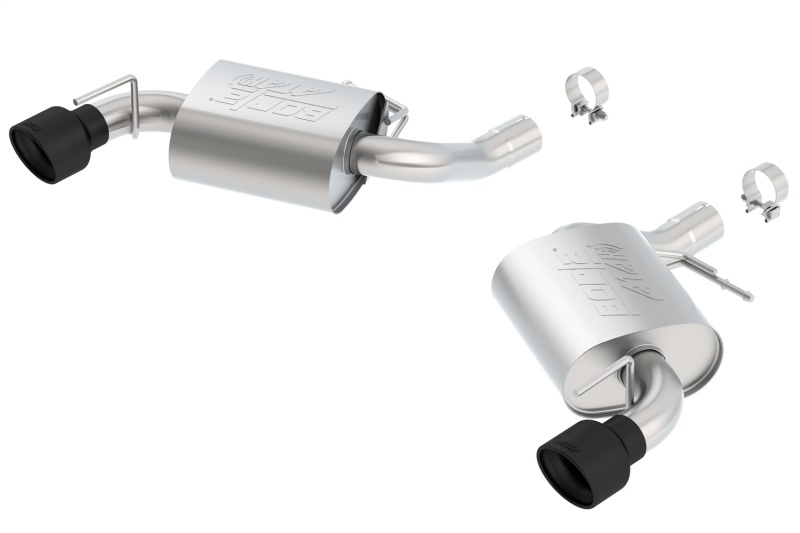 This system features the aggressive ATAK(r) sound with no drone inside the vehicle. The 2.75" diameter system is designed for vehicles that come from the factory with single tips and are NOT with Dual Mode Exhaust (NPP) valves. By adding Borla(r) X-Pipe with Mid-Pipes part number 60607 (WITHOUT AFM Valves), or 60610 (With AFM Valves) you can create a Cat-Back(tm) system for your Camaro SS Coupe. The X-Pipes with Mid-Pipes do NOT fit Convertibles. It features a durable high temperature black finish on single 4.5" round T-304 stainless steel tips on each muffler assembly. Systems with polished T-304 stainless steel tips, and carbon fiber tips are also available. Systems with bright chrome on T-304 stainless steel tips and carbon fiber tips are also available. Borla(r) Cat-Back(tm) & Axle-Back exhaust systems feature patented straight-through and multi-core technology to unleash hidden horsepower. Increased exhaust velocity adds power, driving excitement, fuel economy, and the distinctive Borla(r) Sound of Power respected by motoring enthusiasts everywhere. Each system is built from premium T-304 austenitic stainless steel, superior to T-400 series knockoffs (such as 409), to give you the absolute best in performance and durability. Ultra-smooth mandrel bends ensure maximum flow & power, and precision computer numerical control (CNC) manufacturing ensures an accurate fit. Best of all, Borla(r) stands behind every system with a Million-Mile Warranty. Just what you'd expect from the world's most experienced (and most winning) exhaust brand.