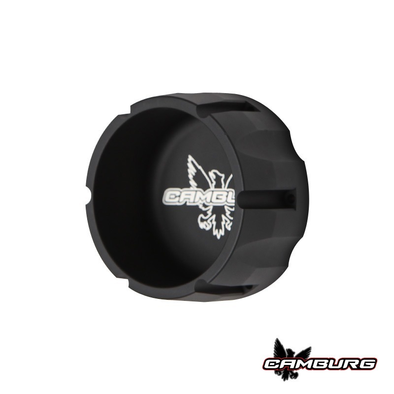 Our race and championship winning Camburg 2.50 front hubs are the ultimate front hub setup for race trucks and serious PreRunners. These are what we use on all our KINETIK 7200/6100/TT's. They are available in 5 on 5.5" and 6 on 5.5" bolt patterns along with the larger 6 on 6.5" racing bolt pattern. Our 2.50 lightweight front hub design has a wide bearing spread for increased strength and longevity. We also use larger 7" and 8" round material for the hub body for increased strength around the wheel stud area. We CNC machine the hubs in-house from more expensive and stronger 7075-T6 aluminum, then type II anodize them matte black. Our wheel studs are also machined in-house from 4340 chromoly, then heated-treated, stress relieved and black-oxide coated. They have 5/8-18 threads with an 11/16 shoulder for optimum strength. The tapered hub-centric center caps help get the wheels on when you’re out on the race course where time is critical. We supply them with high quality Timken bearings and races along with SKF seals. Our red brake rotor adapters round out the package with all the necessary hardware, O-rings, etc. and bearing preload spacers. Simple things like drilled head bolts to safety wire the brake rotor adapters on, show the attention to detail with our hub kits that you don’t get from other companies. We cut no corners or costs using the best materials, designs and processes. To complete this setup you’ll need our weld-in/bolt-on spindle snouts and our custom spindle nut wrench.