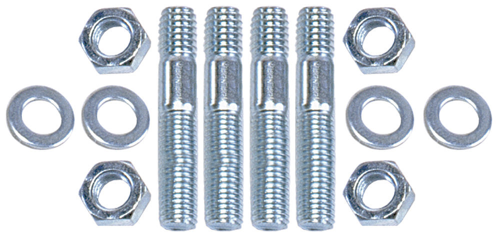 Product Description Carburetor Stud - 5/16-18 and 5/16-24 in Thread - 3 in Long - Hex Nuts - Steel - Zinc Oxide - Set of 4