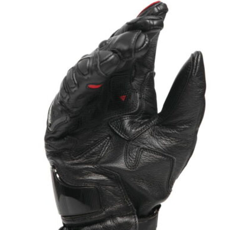The Dainese Druid 4 leather racing gloves are an expression of the highest protection standards, designed for maximum performance on the track and the road. World Championship safety and ergonomics are guaranteed by the presence of the pre-curved and thermoformed sleeve, the carbon inserts on the knuckles and back, and the thermoplastic protector on the little finger. They are guaranteed to be resistant owing to the polyurethane inserts on the palm and joints, while four-way stretch ensures extreme comfort and a perfect fit at all times.