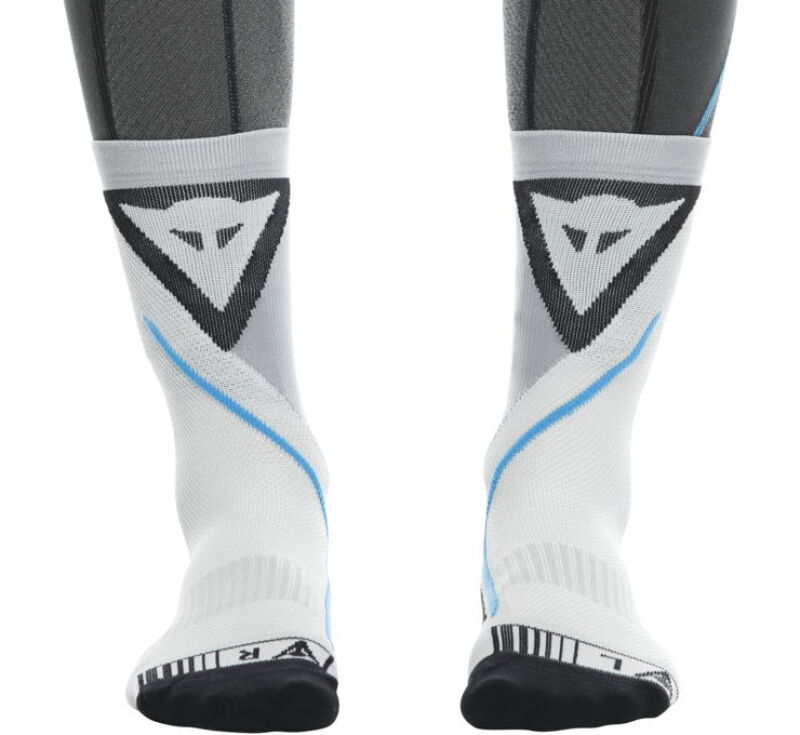 Dry Mid Socks are the mid-length version of Dainese Dry, breathable socks designed to ensure ergonomics and appropriate thermoregulation in milder climates. The Dryarn hydrophobic fabric allows Dry Socks to optimize the sweat management process, keeping the body dry at all times and ensuring freshness and comfort.