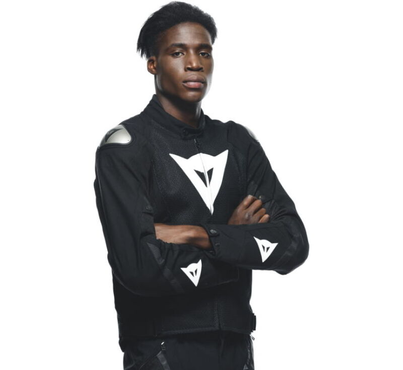 Product Description Energyca Air Tex motorcycle jacket in abrasion-resistant stretch Cordura with mesh inserts, removable windproof lining, certified composite protectors, and aluminum plates on the shoulders