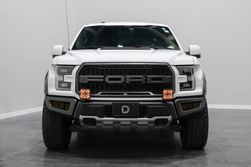 Features Bolt-on fitment compatible with Ford Raptor 2017-2020 Ultra-high intensity, with custom-engineered TIR optics Selectable backlight color, with eight color options Torture-tested, heavy-duty construction Control through factory aux switch bank using the included harness Assembled in USA Overview Perfect Fitment. The Bumper LED Pod Light Kit compatible with Ford Raptor 2017-2020 from Diode Dynamics allows you to mount two SS5 LED pods on the factory bumper. These application-specific brackets were CAD-designed to bolt into place using factory mounting points. Designed for Performance. Featuring the highest output intensity of any 5-inch LED pod on the market, these lamps have been designed for maximum functionality, with patented technology and custom-engineered TIR optics, all in a durable package. Selectable Backlight. The Stage Series 5inch LED Pods included in the White kit feature a selectable backlight with eight different color options, perfect for an extra styling accent, or for more visibility when you’re not using the main beam. Selecting your backlight color is easy - simply alternate the power on and off. There’s no complicated programming with a controller! The SS5's backlight fully illuminates the TIR optic, providing unique accent lighting that you won't find on other LED pods. NOTE: Due to the yellow lens, the Yellow kit is only available with an Amber backlight color. NOTE: The existing mounting points must be drilled out larger in order to secure the bracket.