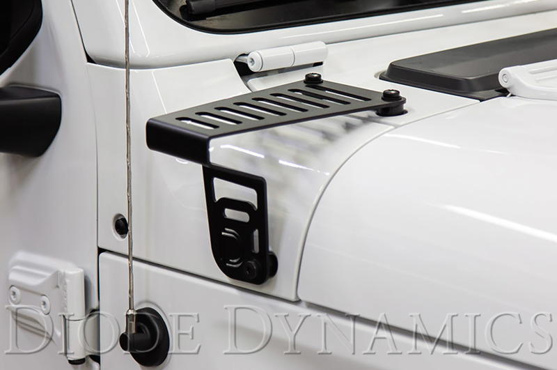 Features CAD-designed to be compatible with Jeep Gladiator 2020-2025. Features multiple mounting points for endless mounting options. Compatible with any pod, worklight, or small light bar. When a set of standard pods is mounted on the outer slot, they allow you to still fold down the windshield. Includes OEM-style automotive grade hardware designed specifically for this kit. Overview Perfect Fitment. The Cowl Mount LED Light Bar Kit is compatible with the Jeep Gladiator 2020-2025 and allows you to easily mount just about any auxiliary lighting you can think of. These application-specific brackets were CAD-designed to install using factory mounting points. No cutting or drilling required! Endless Mounting Options.These brackets were designed with a variety of different mounting points for endless mounting options. You can mount multiple pods, a larger worklight, or even a small light bar to achieve the look you're after! There are even slots on the side of the bracket to mount ditch lights. When standard pods are installed on the outer slot, you can fold the windshield down without removing your auxiliary lighting. What's Included Two (2) Application-specific cowl mount brackets compatible with Jeep Gladiator 2020-2025 Six (6) Delrin spacers Six (6) OEM-style automotive grade bolts Installation Guide