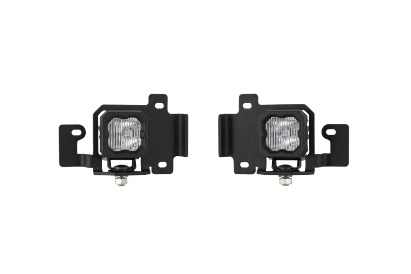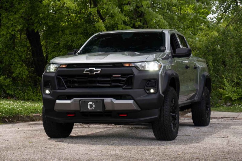 Features Bolt-on fitment compatible with Chevrolet Colorado 2023-2024. Adds SAE-compliant fog lights Plug-and-play harness. Backlight feature provides amber accent light. Highly durable powdercoated stainless steel bracket. Engineered and assembled in USA. Overview. The Stage Series Fog Pocket Kit compatible with Chevrolet Colorado 2023-2024 from Diode Dynamics allows you to mount two SSC1 LED Pods. This kit adds some serious functionality to your vehicle with road-legal fog lights. This kit includes application-specific brackets that were CAD-designed to install using factory mounting points. No cutting or drilling required! Lighting for Every Situation. This kit includes two SSC1 LED Pods in the SAE-compliant fog beam pattern. The unique design of the fog light brackets allows you to aim the pods. This newly designed fog light kit provides ideal light output for everyday use! White or Yellow Fog. The SSC1 fog pods included with this kit are available in both cool white and yellow LED pod options. The white is a 6000K color temperature, which produces cool white output, and matches most factory LED lighting. The selective yellow is a 3000K color temperature, great for poor weather or a distinctive look on the road. Experience. After over a decade in business, Diode Dynamics is one of the most trusted names in automotive LED lighting. We directly assemble and engineer our own products in the United States, allowing for higher quality and performance, with the newest and brightest LED technology. No matter what you're driving, we pride ourselves in offering only the best possible LED solutions.