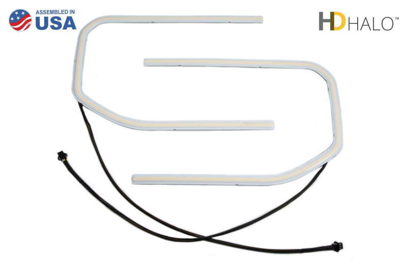 Features Computer-designed LED Halos compatible with Sierra 1500 2016-2018 A huge increase in brightness, even in direct sunlight More uniform output, upgrade from segmented factory optics Designed and assembled in the USA Overview Time for an upgrade! From the factory, the Sierra comes with a white C-shaped DRL that from certain angles can look segmented and distorted. Diode Dynamics is excited to release our HD LED Halos compatible with GMC Sierra 2016-2018 that provides a much brighter, more uniform appearance compared to the factory optics. These computer-designed LED Halos are circuit boards that align perfectly behind the factory diffusing reflector. Available in switchback and amber-only, both versions also function as an additional front turn signal for a custom, yet functional look! High output, clean appearance. The application-specific LED halos illuminate in place of the factory LED boards, with a much higher intensity. With our proprietary high-density "HDLED" technology, these modules are populated with over 700 LED chips, which are then coated by a diffusing gel, resulting in a perfectly uniform light when turned on. When it's off, the diffusing gel hides the chips, resulting in a clean, OEM appearance. Wire it up. Wiring instructions are included with your order. You will need to use the included T-tap connectors to connect the drivers to ground, parking signal, DRL, and turn signal on each side. Professional installation is recommended for this product, as the headlights must be opened. What's Included Two (2) application-specific LED Halos Two (2) waterproof drivers Two (2) input wire pigtails with T-taps Installation guide 3-year replacement warranty