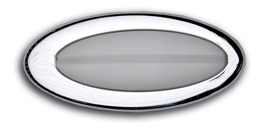 Product Description Dome Light - Elliptical - 12V Bulb - Frosted Lens - Surface Mount - Hardware Included - Aluminum - Chrome - Each
