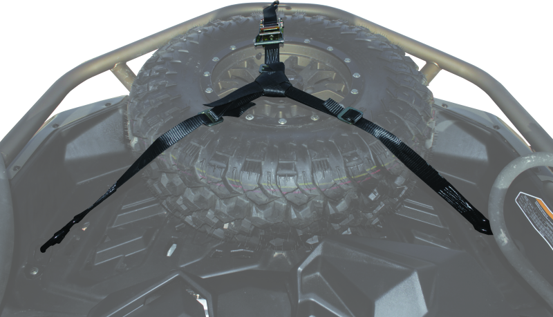Product Description The DragonFire Spare Tire Tie-Down Strap features rubber-coated snap hooks and a heavy-duty ratchet system that fits up to 37 in. tires.