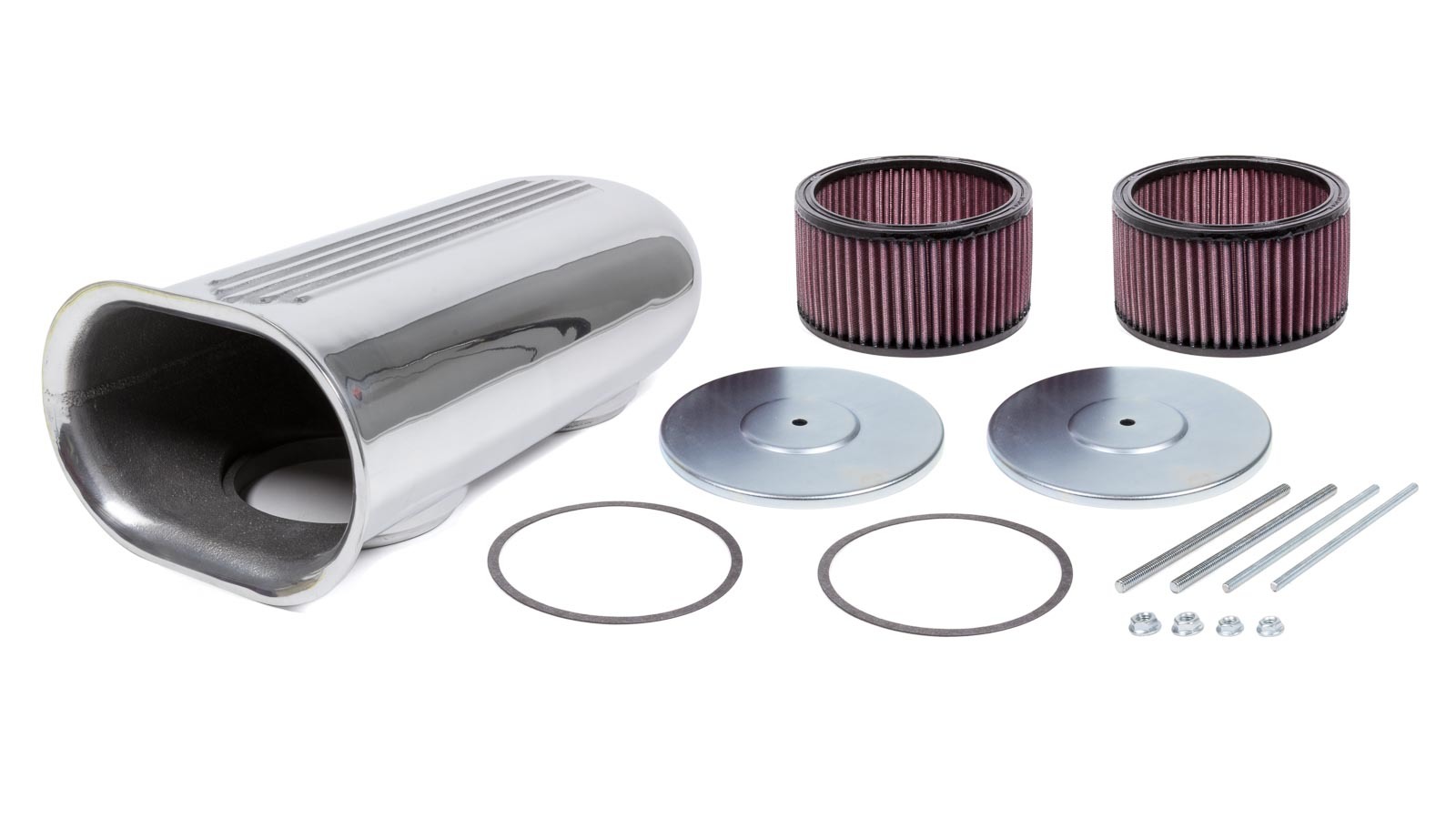 Product Description Air Cleaner Assembly - Street Scoop - 18.375 in Length - Dual and Single 5-1/8 in Carb Flange - Aluminum - Polished - Kit