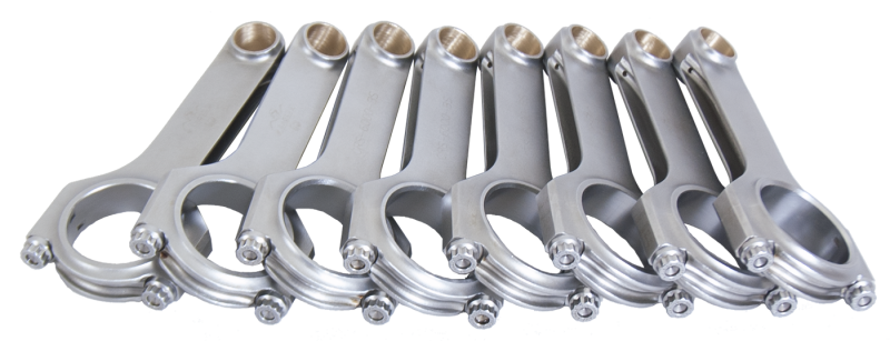 Forged 4340 steel H-Beam connecting rods are forged from a two-piece forging and feature a fully machined and shot-peened surface. Sizing is held to exact tolerances. Sold as a weight-matched set. Equipped with ARP L19 bolts for the ultimate in power-handling capability. Recommended for competition use.