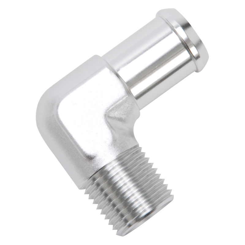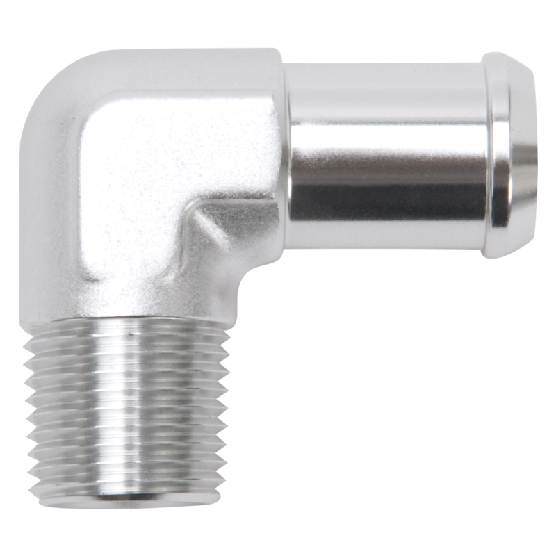 Edelbrock Hose End 90-Deg 1/2In NPT to 3/4In Barb Clear Anodize - 8166