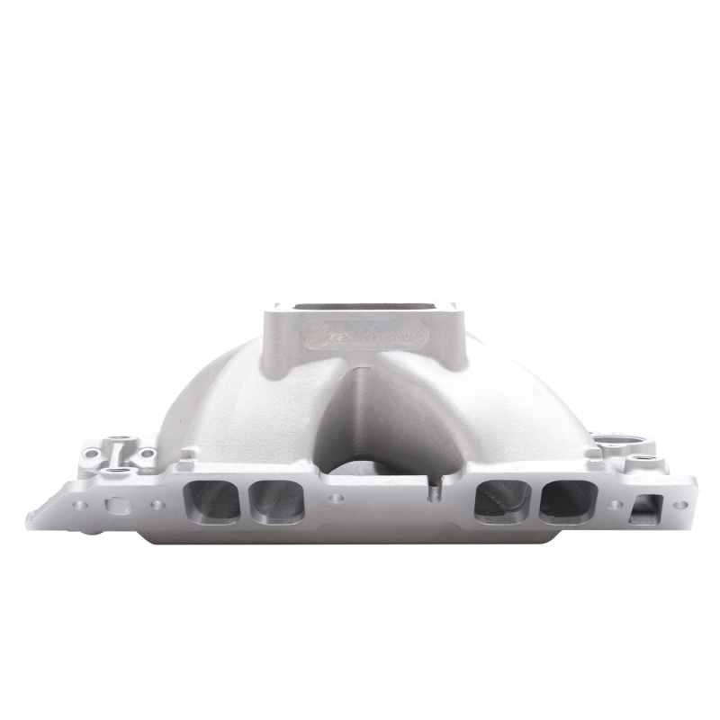 Edelbrock part #28962 Super Victor II intake manifold is designed for use with large cubic inch big-block Chevy engines using the latest design conventional rectangular port heads. This single-plane intake manifolds is ideal for any 1,000+ horsepower drag race engine with high air flow requirements. The Super Victor II intake manifold is CNC port matched for Edelbrock/Musi Victor 24 degree CNC 377cc cylinder heads #61409. Accepts standard height distributors. The manifold has an extra large carburetor outer flange with a 5" x 5" opening to fit high flow carburetors and throttle stops.