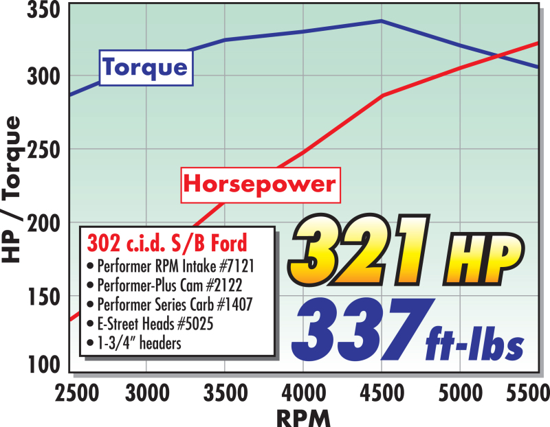 Edelbrock part #7121 Performer RPM 302 intake manifold is designed for street 289-302 c.i.d. Ford V8's. This dual-plane high rise manifold has excellent high rpm power while retaining throttle response. No provisions for exhaust heated choke. Edelbrock carbs will work with Ford automatic overdrive trans (AOD) when used with Lokar bracket SRK-4000, for more info call (865) 966-2269 or go to www.lokar.com.