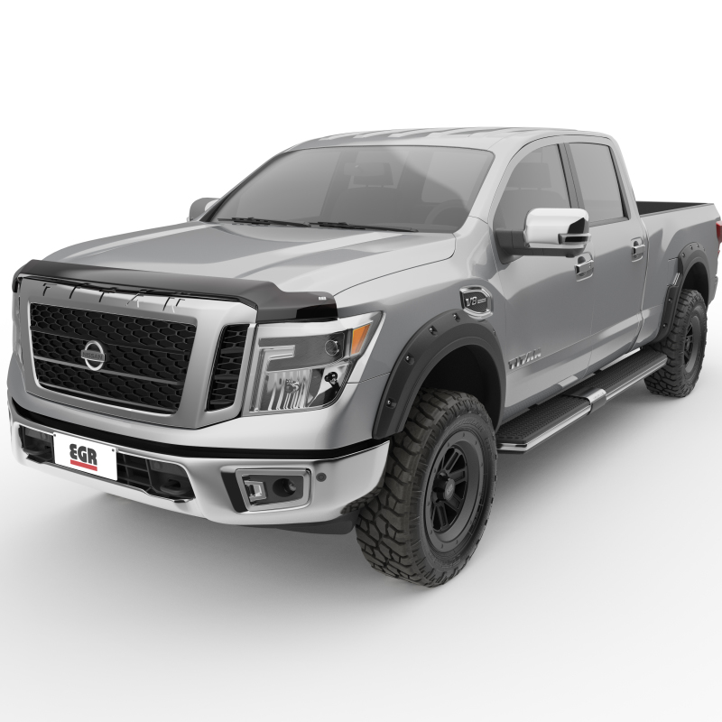 Superguard Dark Smoke Hood Guards feature EGR's no drill, durable, impact resistant, OEM grade material for extra strength. The Dark Smoke finish provides a stealth appearance that compliments the front end of the vehicle. Mounts away from the hood for easy cleaning and maintenance. Limited lifetime warranty.