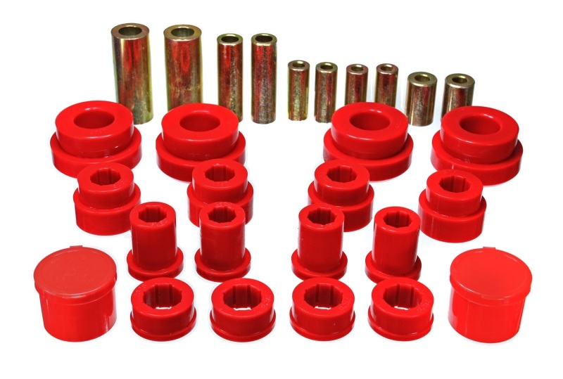 For both front and rear of suspensions on cars, trucks and SUVs. Made of Energy's Hyper-Flex performance polyurethane for optimum performance and durability. Maintains proper alignment under extreme conditions on the street, track or off-road. Improves vehicle handling, cornering and overall control. Full floating for smoother, efficient operation. Outlasts and outperforms rubber.