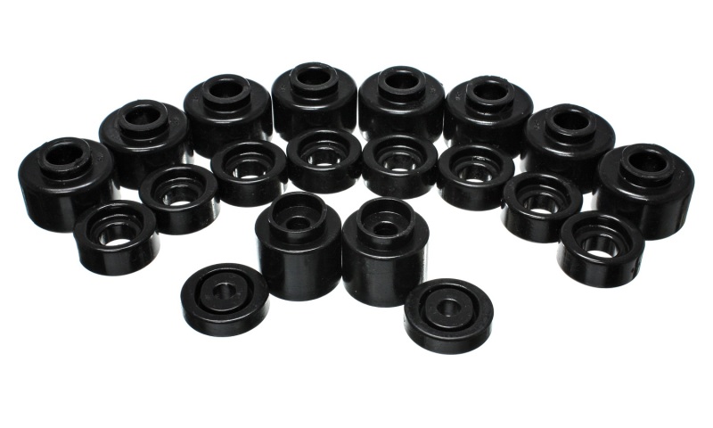 Will replace distorted and worn-out original rubber mounts to maintain car body and truck cab to bed alignment. Original rubber mounts are so soft they often crack, distort, and crush so badly they often fall off. And aluminum body mounts are too harsh for street use that they tend to break and cause other components to break. Energy's specially formulated Hyper-Flex(TM) polyurethane cab and body mounts combine the best qualities of both: they're soft enough for a smooth ride, yet rugged enough for the most demanding road or track. Most sets have a strong zinc plated steel ring molded into them - for added durability and when the application requires it.