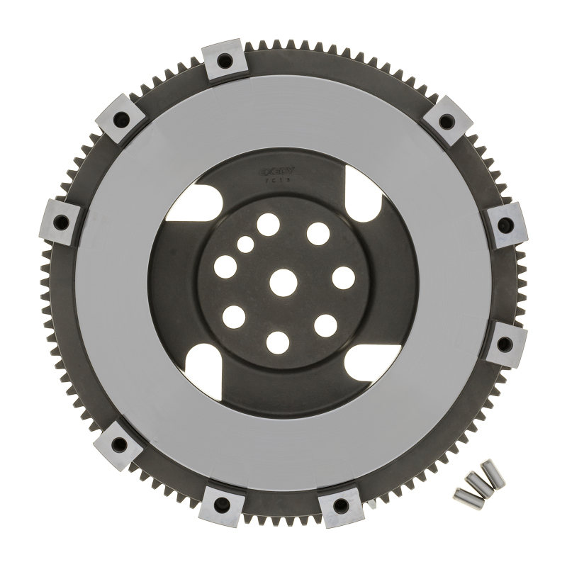 Exedy flywheels combine low weight, low inertia and high thermal capacity. They are designed for lightly tuned racing cars and drag racing, autocross and rally events, as well as street usage. They are made from solid one-piece billet chromoly steel or chromoly steel forgings. They are specifically designed to reduce weight and inertia for better engine response. Most incorporate special design features to enhance airflow and cooling of the clutch. The ring gear teeth are integrated onto the flywheel unlike an aluminum flywheel where the ring gear is pressed onto the flywheel and has the possibility of separating due to different expansion coefficients of aluminum vs. steel. Exedy steel billet and forged steel flywheels have passed engineering tests to 15,000-18,000 rpm and guaranteed not to fail to the said rpm and are all SFI approved.