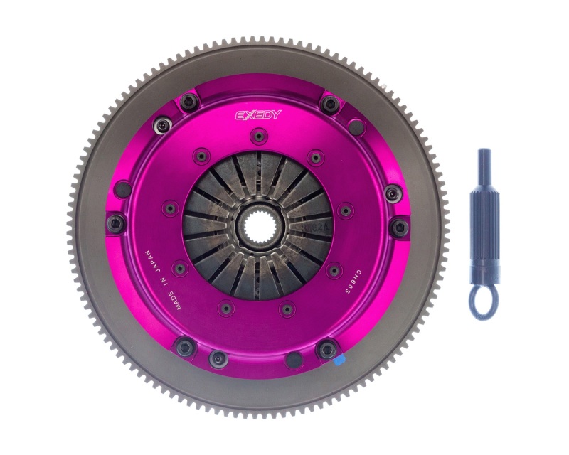 The EXEDY Hyper Single Series clutch is engineered to optimize the performance of cars that are moderately modified, but do not require the clutch capacity of a multi-plate clutch. Similar to our multi-plate clutches, it has a purple anodized, forged aluminum cover. The aluminum cover is stiffer than a stamped cover and therefore allows a higher lever ratio to maintain the pedal efforts at a reasonable level. There is no clamp load deflection as found in a pressed metal type cover. Additionally, the pressure plate features a series of turbine-like, air flow enhancing vanes that keep the clutch cooler under extreme operating conditions to improve wear life.