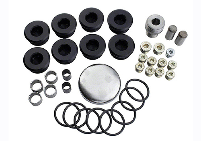 Plug/Dowel Kit; Fits w/Boss 302/351 Pushrod; Incl. 8Core Plugs/8ORings/10 ORB Plugs/2Timing Cover And 4Cylinder Head And 2BellHousing-Trans Dowels/CamCup Plug/Oil Filter Insert;