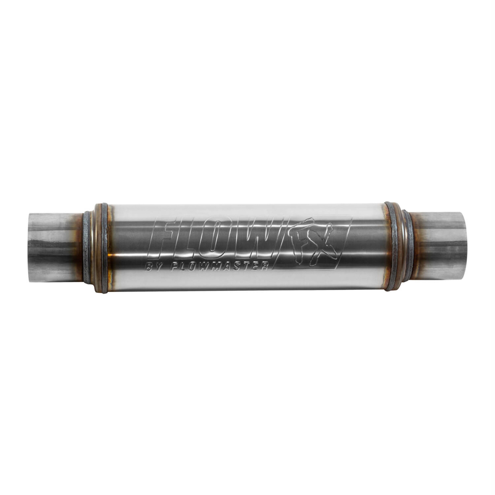Product Description Muffler - FlowFX - 3 in Center Inlet - 3 in Center Outlet - 14 x 4 in Round Body - 20 in Long - Stainless - Natural - Universal - Each