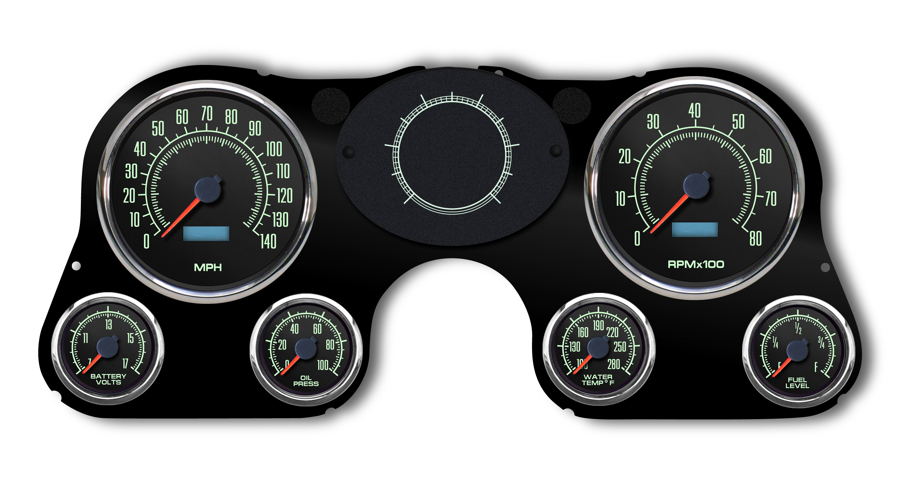 Product Description Gauge Kit - 69 Series - Analog - Fuel Level / Oil Pressure / Water Temperature / Voltmeter / Tachometer / Speedometer - Black Face - GM Fullsize Truck 1967-72 - Kit