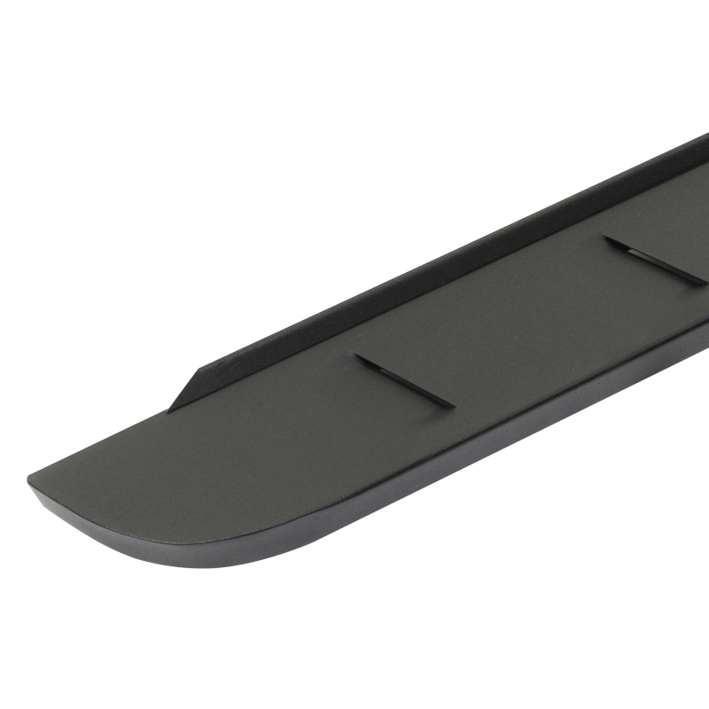 The RB10 Slim Line Running Boards offer the same heavy duty toughness as the original RB Series, but with a slimmer design that fits tighter along the cab for increased ground clearance when off-roading. Constructed from 16-gauge zinc-coated galvanized steel, the Raptor-inspired boards were built to protect your panels from flying debris while providing a full-length step platform. The classic louvered design is four inches across at its widest point (compared with six inches of the original RB10) and are offered in cab-length sizes that fit most popular trucks, Jeeps and SUVs. RB10 Slim Running Boards With Drop Steps come with a Limited Lifetime warranty on materials and construction and a 5 year warranty on the Bedliner Finish.