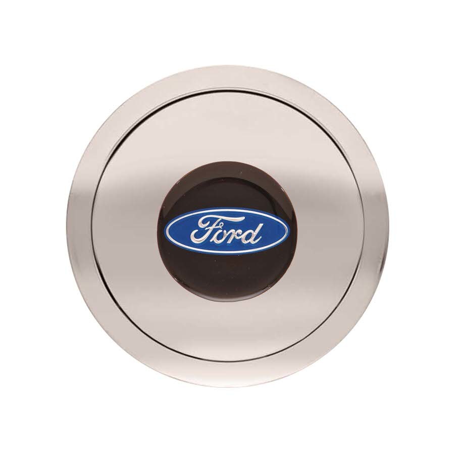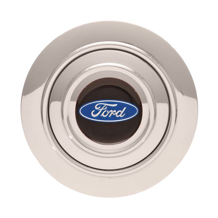 Product Description Horn Button - GT9 - Ford Blue Oval - Billet Aluminum - Polished - 9-Bolt Steering Wheels - Each