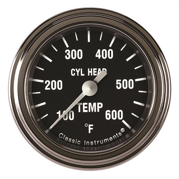 Product Description Cylinder Head Temp Gauge - Hot Rod - 100-600 Degrees F - Electric - Analog - Full Sweep - 2-1/8 in Diameter - 14 mm Thermocouple - Low Step Stainless Bezel - Flat Lens - Black Face - Each