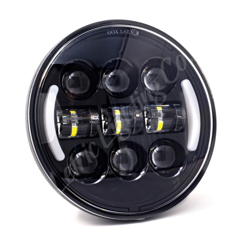 The Letric Lighting Co. Deluxe Headlight with Integrated Switchback Turn Signals are designed with exclusive white left and right running lights, with amber switchback turn signal. The side LEDs are both white running lights until the turn signal is activated.