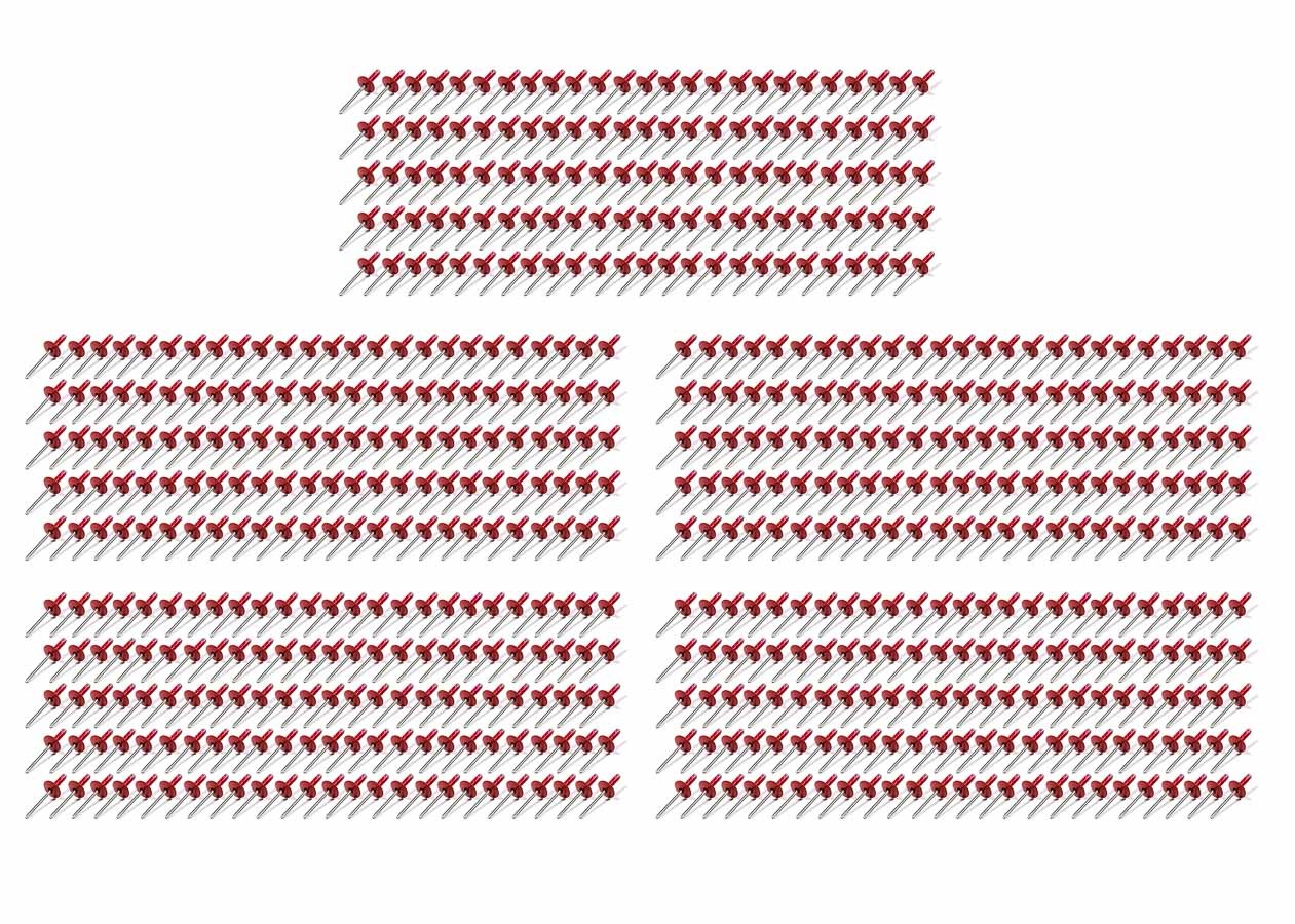 Product Description Rivet - Avex Style - 5/8 in Head - 3/16 in Steel Mandrel - 1/2 in Grip Range - Aluminum - Red Powder Coat - Set of 500