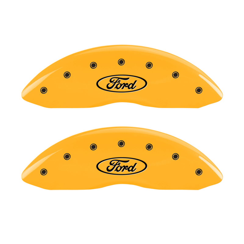 MGP 4 Caliper Covers Engraved F & R Oval Logo/Ford Yellow Finish Black Char 2005 Ford Excursion - 10146SFRDYL
