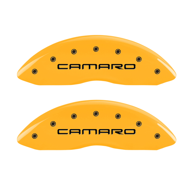 MGP Caliper Covers are a car accessory designed and manufactured specifically for your 1998-2002 Chevrolet Camaro to cover up and hide those ugly brake calipers. These aluminum caliper covers are finished with a high-quality powder coat. MGP caliper covers will enhance your wheel appearance and curbside appeal with either black, yellow or red caliper covers. MGP Brake Caliper Covers are tested for safety fitment and are licensed by major manufacturers.