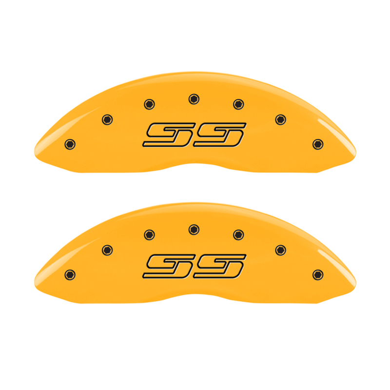 MGP 4 Caliper Covers Engraved Front & Rear Avalanche style/SS Yellow finish black ch - 14004SSS1YL