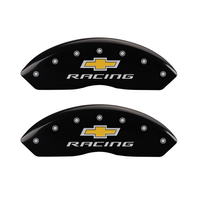 MGP 4 Caliper Covers Engraved Front & Rear Chevy racing Black finish silver ch - 13007SBRCBK